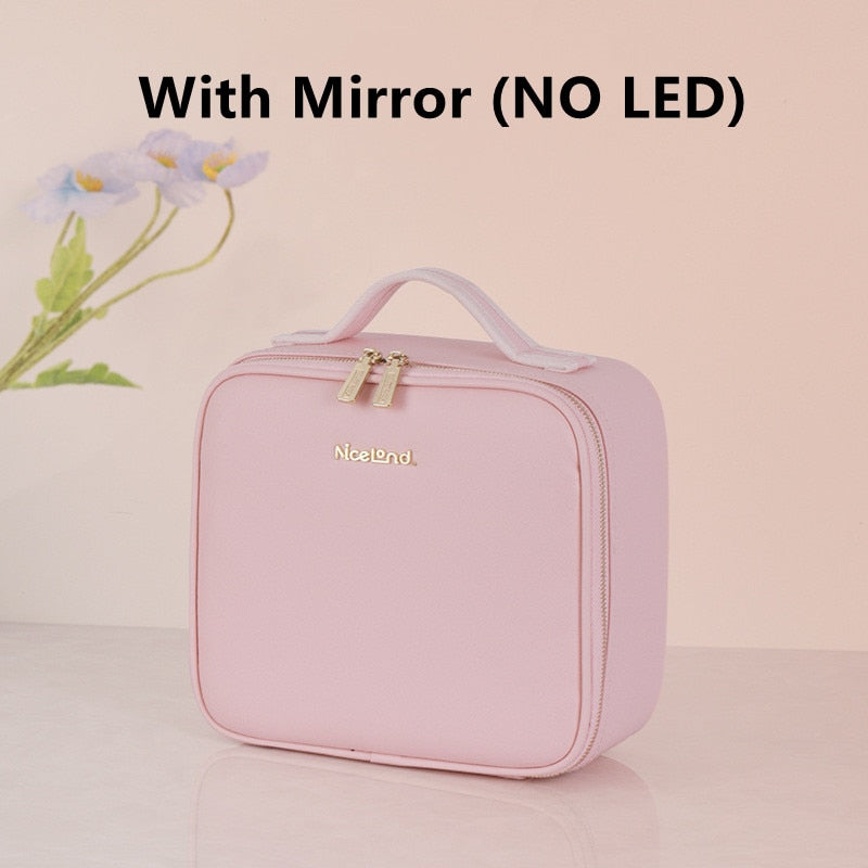 Smart LED Cosmetic Case with Mirror Cosmetic Bag Large Capacity Fashion Portable Storage Bag Travel Makeup Bags for Women -