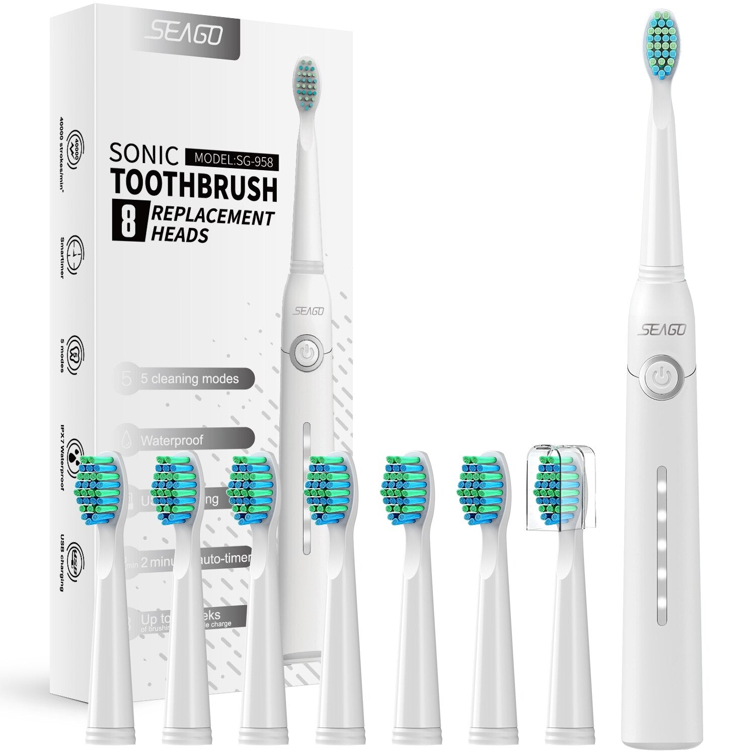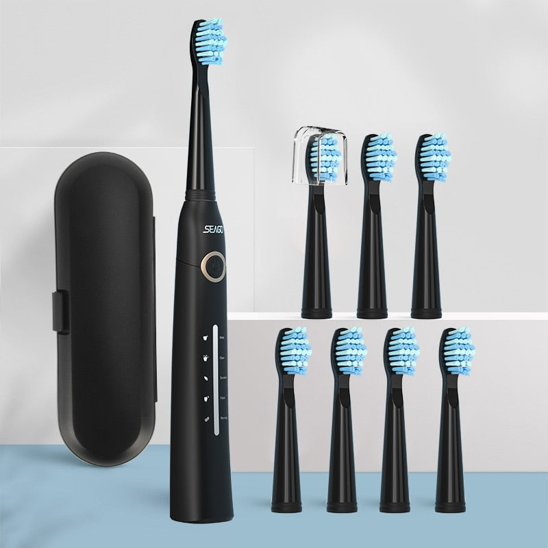 Seago Sonic Electric Toothbrush Tooth brush USB Rechargeable adult Waterproof automatic 5 Mode with Travel case -