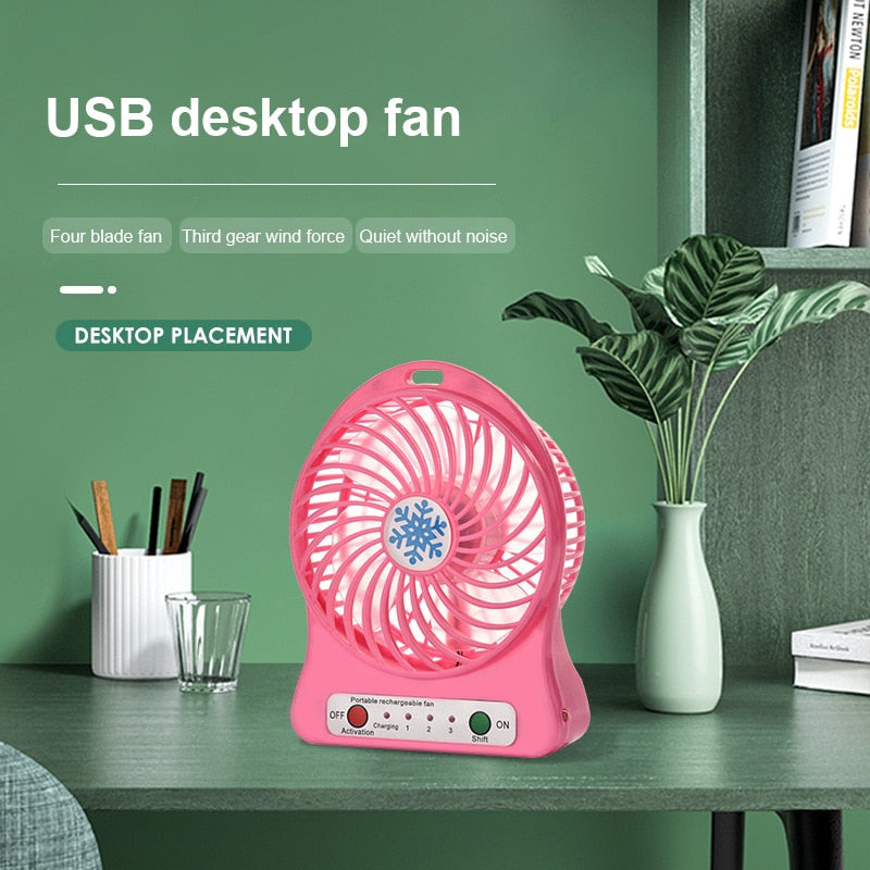 USB Desktop Small Fan Student Rechargeable Mini Fan Snowflake Fan Night Light -