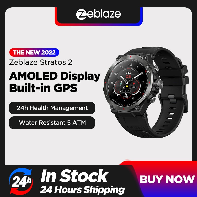 Zeblaze Stratos 2 GPS Smart Watch AMOLED Display 24h Health Monitor 5 ATM Long Battery Life Smartwatch for Men -