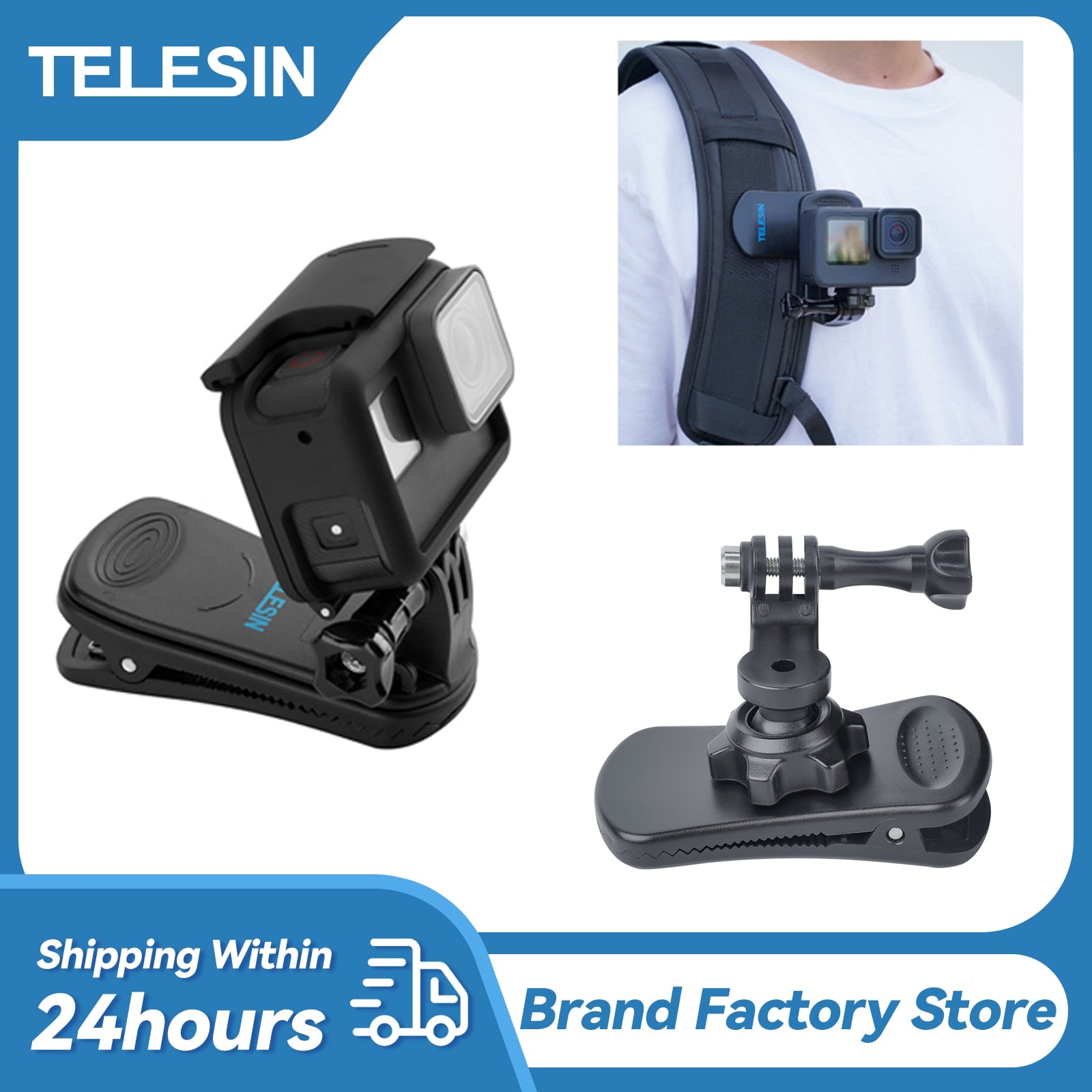 TELESIN For GoPro Hero 11 10 9 8 7 6 Backpack Clip 360 Rotary Clip Mount for Osmo Action Xiaoyi Insta360 X2 ONE R Action Carema -