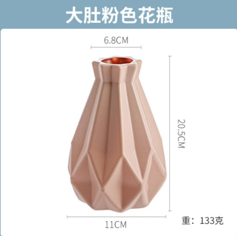 Morandi Plastic Vase Living Room Decoration Ornaments Modern Origami Plastic Vases for Flower Arrangements Home Decoration -