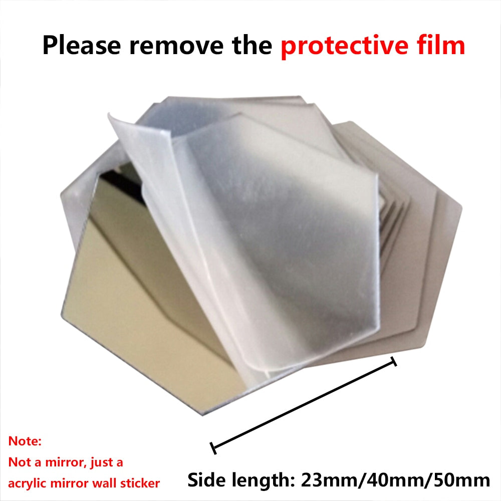 6/12Pcs 3D Mirror Wall Sticker Home Decor Hexagon Decorations DIY Removable Living-Room Decal Art Ornaments For Home -