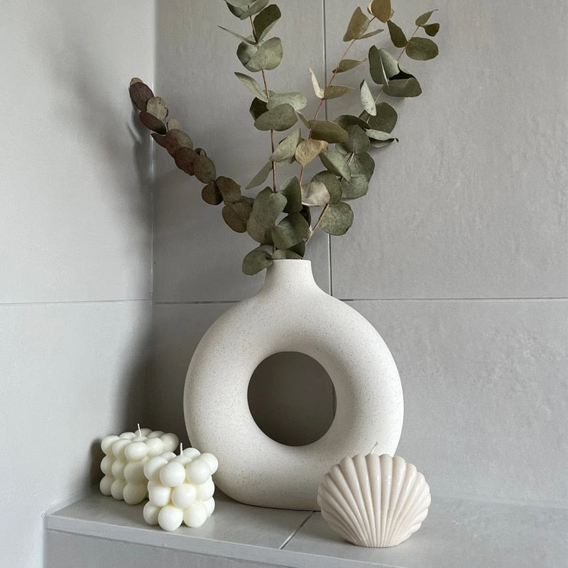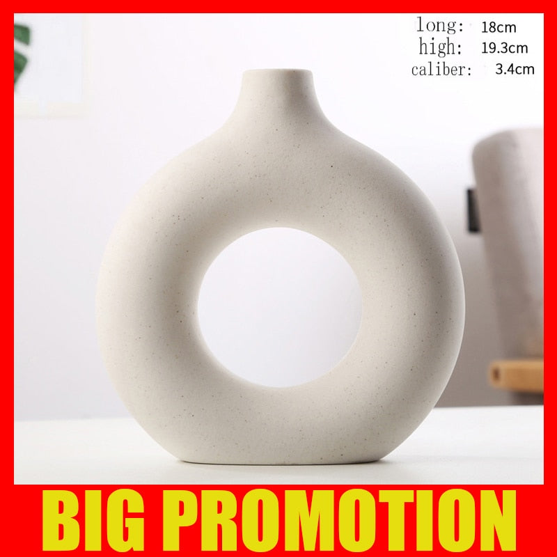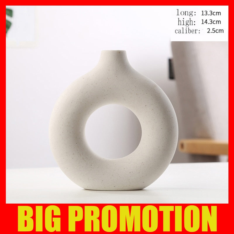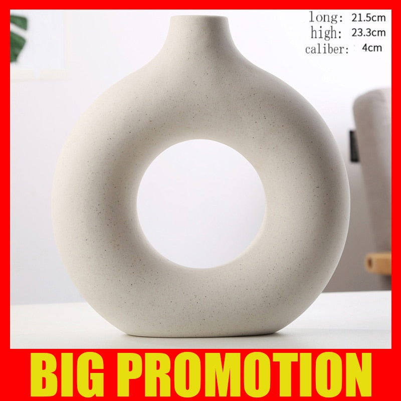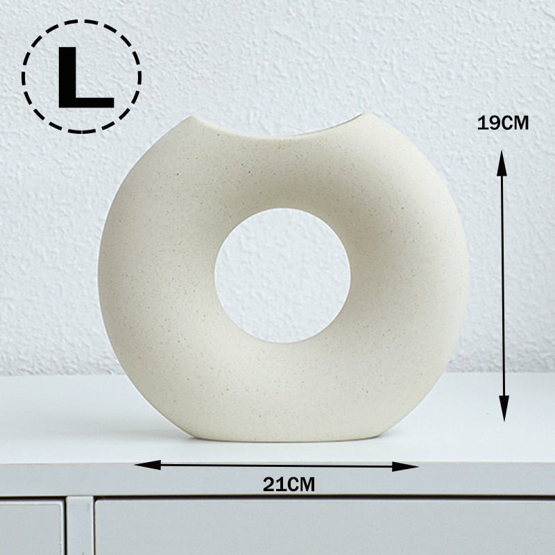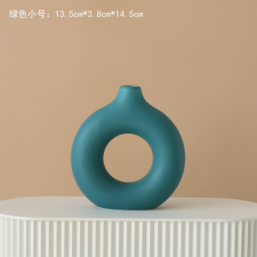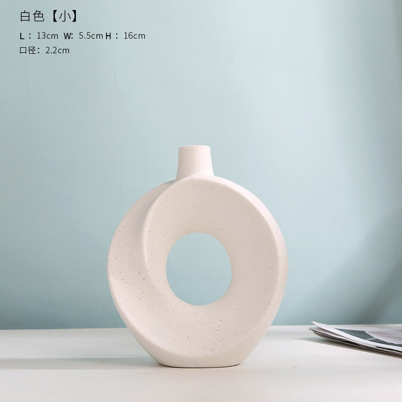 Nordic Vase Circular Hollow Ceramic Donuts Flower Pot Home Living Room Decoration Accessories Interior Office Desktop Decor Gift -