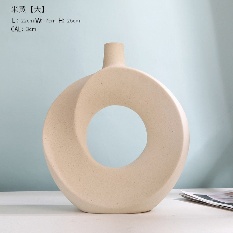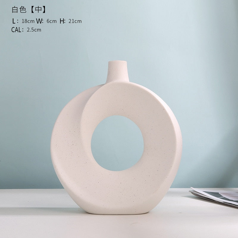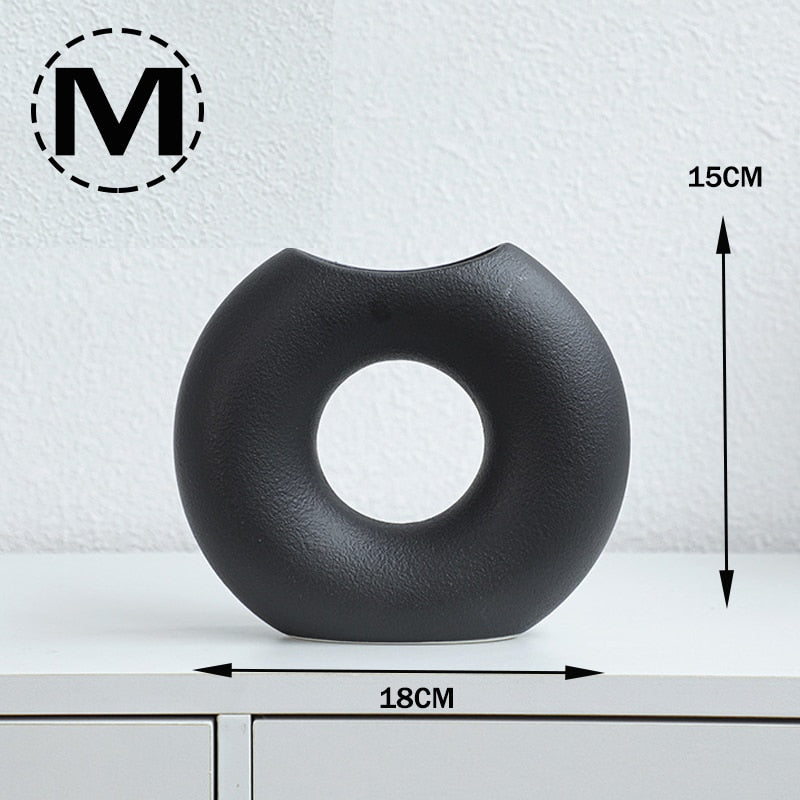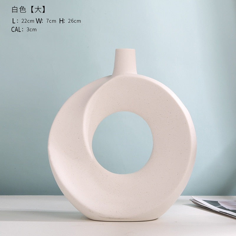 Nordic Modern Ceramic Vases for Decor Circular Hollow Donuts Vases for Flowers Pot Home Living Room Decoration Accessories Interior Office Desktop Decor Gift -