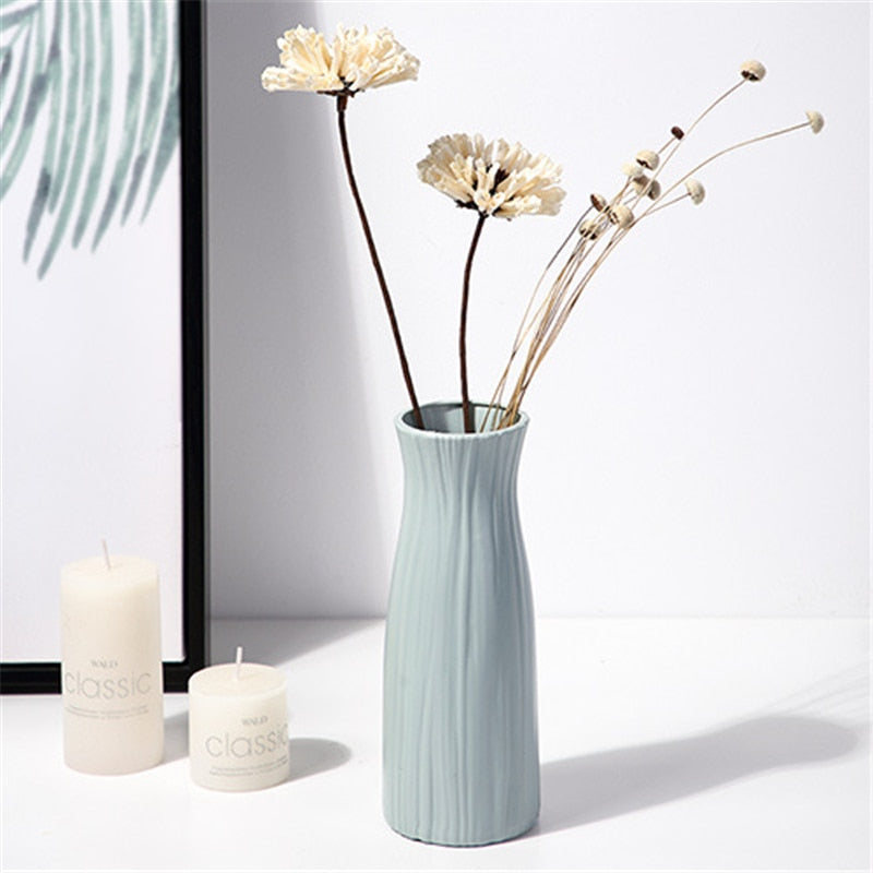 Modern Flower Vase Imitation Ceramic Flower Pot Decoration Home Plastic Vase Flower Arrangement Nordic Style Home Decoration -