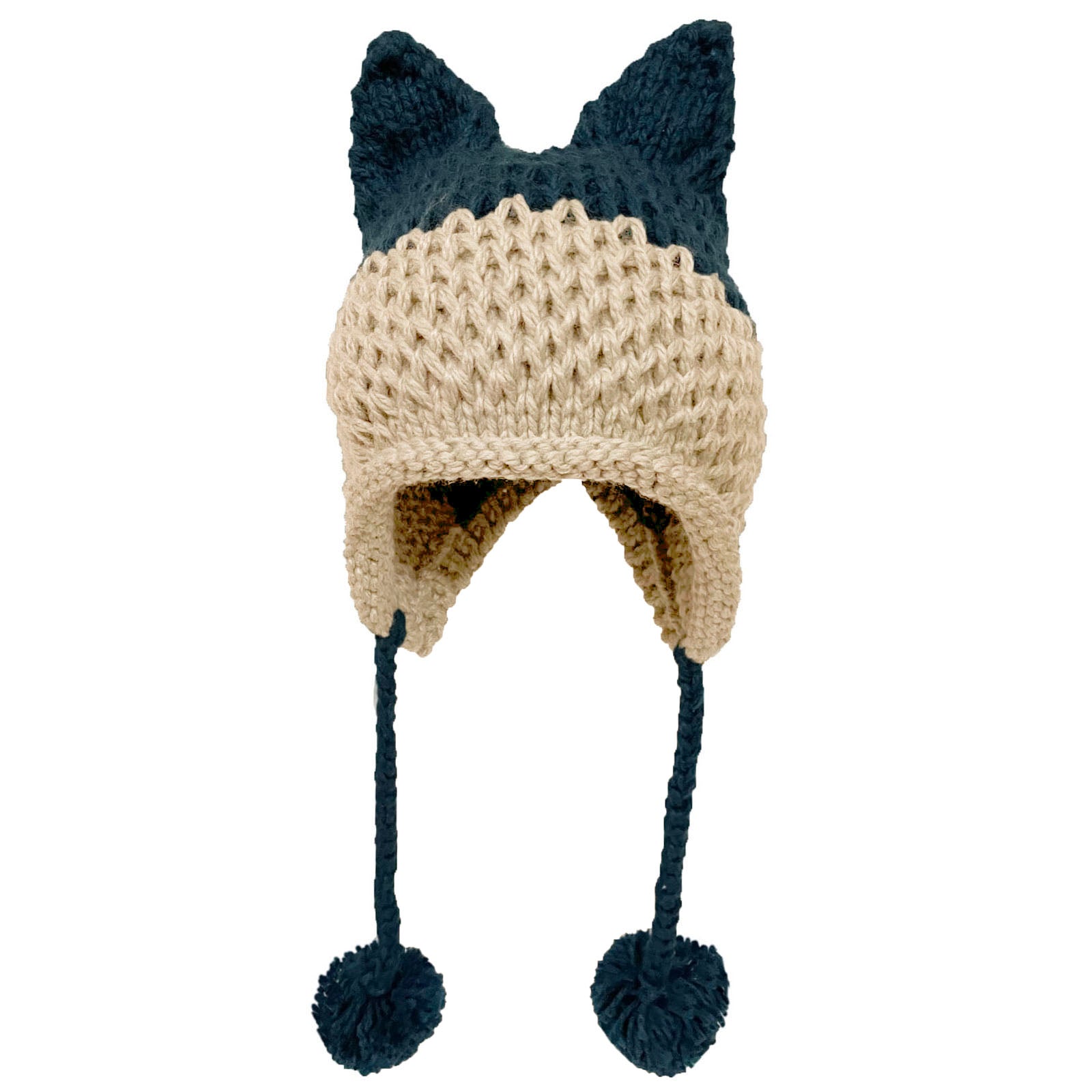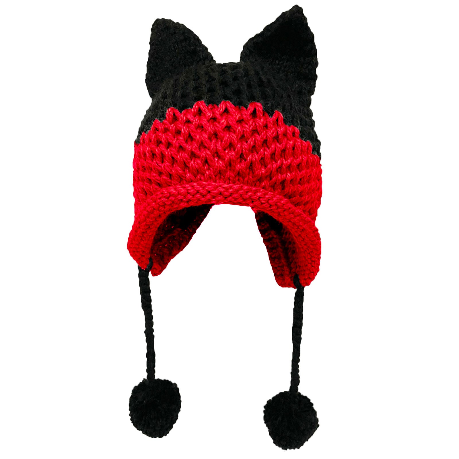 BomHCS Cute Fox Ears Beanie Winter Warm 100% Handmade Knit Hat -