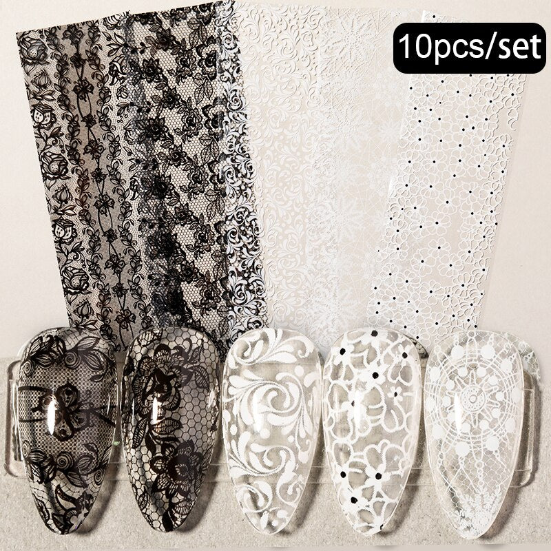 Regular price $15.50 USD Sale price $8.99 USD18-50Pcs/Set Mixed Design New Nail Art Sticker Set Black Lace Gold Silver Glitter Flower Water Decal Slider Wraps Decor Manicure