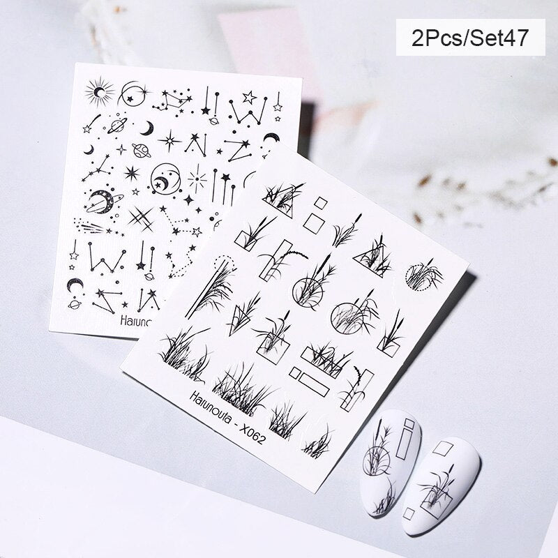 Harunouta French Black White Geometrics Pattern Water Decals Stickers Flower Leaves Slider For Nails Spring Summer Nail Design Harunouta French Black White Geometrics Pattern Water Decals Stickers Flower Leaves Slider For Nails Spring Summer Nail Design