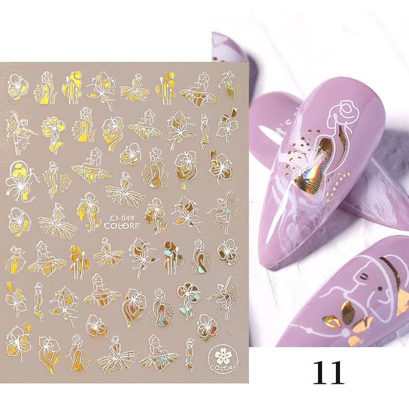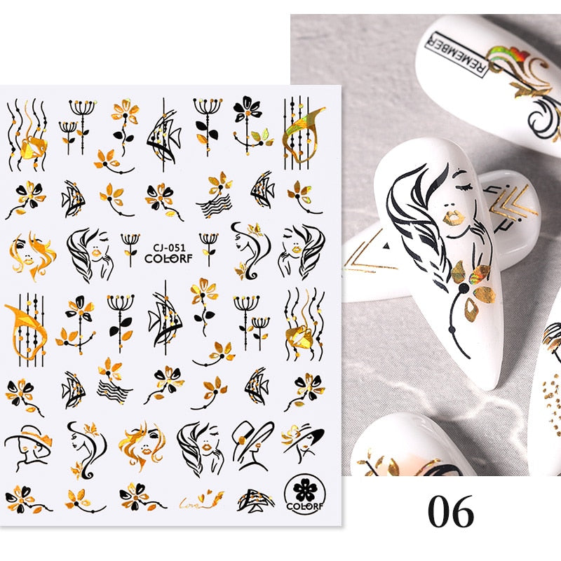 Harunouta Slider Design 3D Black People Silhouettes Blooming Nail Stickers Gold Bronzing Leaf Flower Nail Foils Decoration Harunouta Slider Design 3D Black People Silhouettes Blooming Nail Stickers Gold Bronzing Leaf Flower Nail Foils Decoration