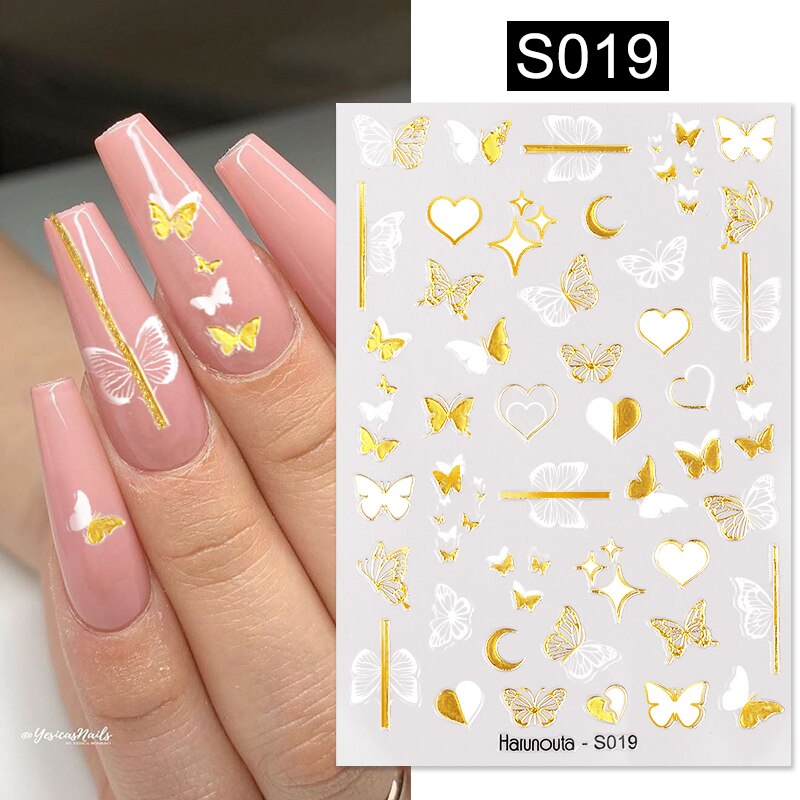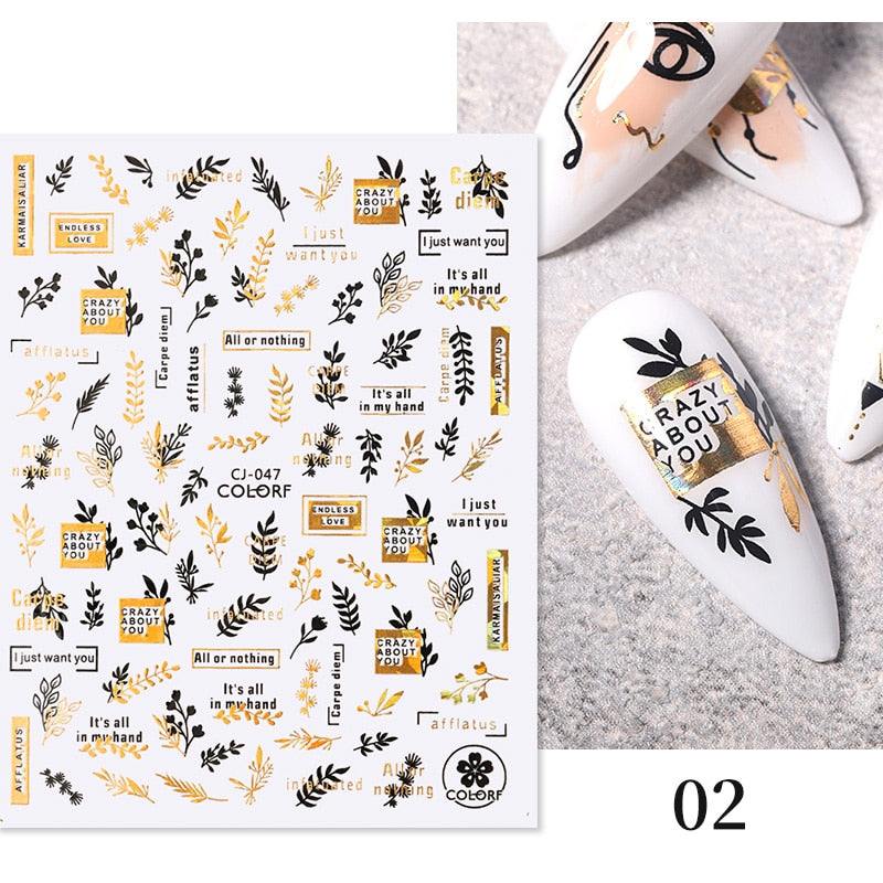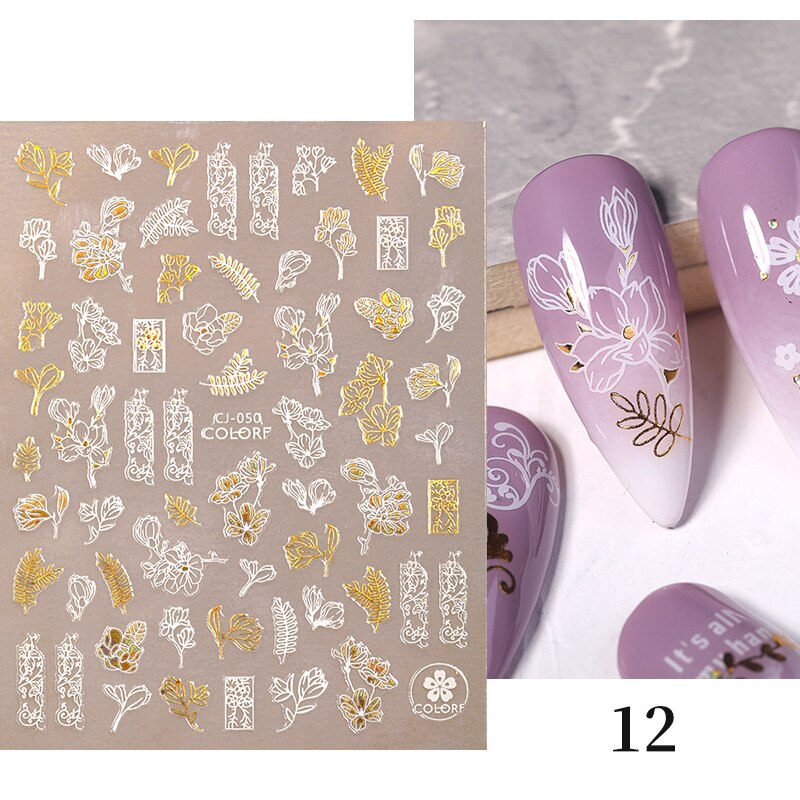 Harunouta 2022 NEW Gold Bronzing Slider Nail Art 3D Decals Decoration Flower Leaves Nail Art Sticker DIY Manicure Transfer Decal Harunouta 2022 NEW Gold Bronzing Slider Nail Art 3D Decals Decoration Flower Leaves Nail Art Sticker DIY Manicure Transfer Decal