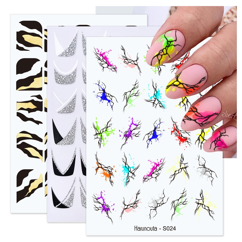 Harunouta Silver Black Geometric Textured Lines Stripe 3D Nail Sticker Flower Leaves Self Adhesive Transfer Sliders Paper Harunouta Silver Black Geometric Textured Lines Stripe 3D Nail Sticker Flower Leaves Self Adhesive Transfer Sliders Paper