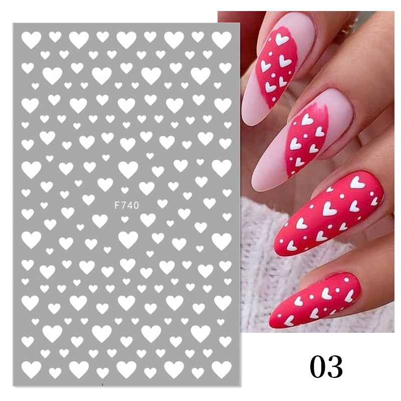Harunouta Valentine's Day 3D Nail Stickers Heart Flower Leaves Line Sliders French Tip Nail Art Transfer Decals 3D Decoration Harunouta Valentine's Day 3D Nail Stickers Heart Flower Leaves Line Sliders French Tip Nail Art Transfer Decals 3D Decoration