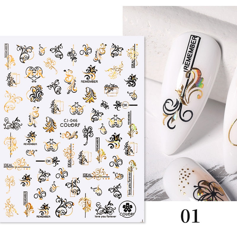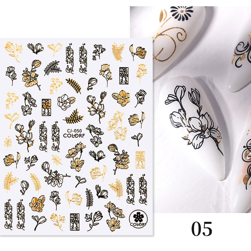 Harunouta 2022 NEW Gold Bronzing Slider Nail Art 3D Decals Decoration Flower Leaves Nail Art Sticker DIY Manicure Transfer Decal Harunouta 2022 NEW Gold Bronzing Slider Nail Art 3D Decals Decoration Flower Leaves Nail Art Sticker DIY Manicure Transfer Decal