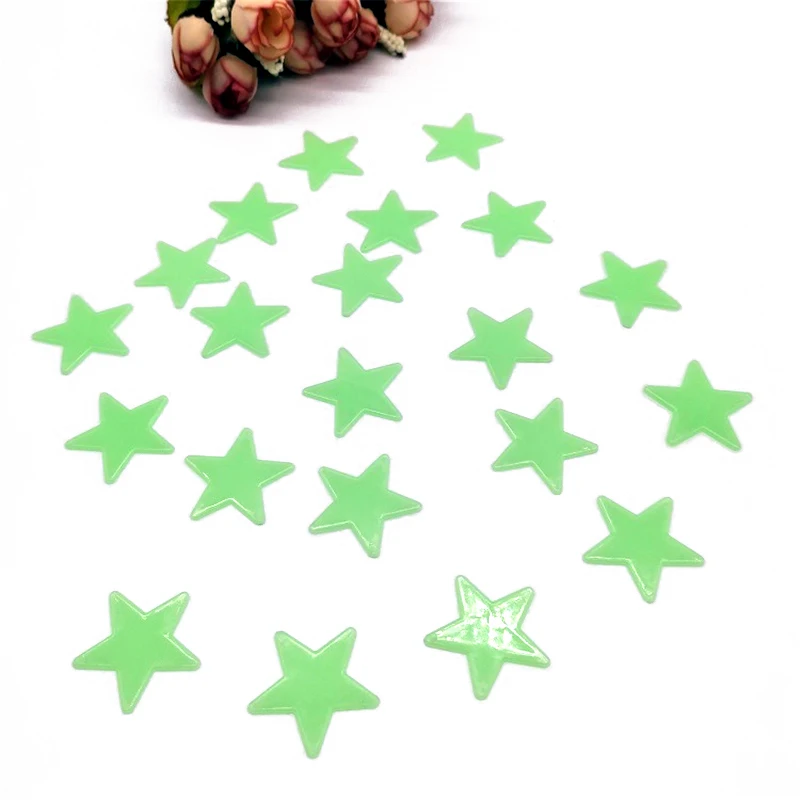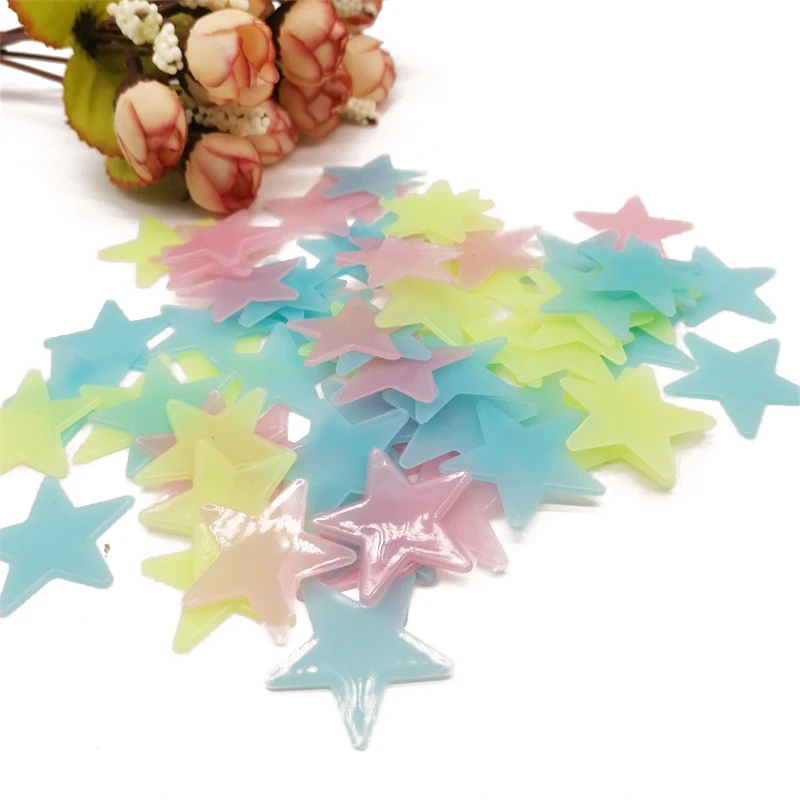 100Pcs 3D Star Wall Stickers Glow In The Dark Energy Storage Fluorescent Luminous Wall Art Decor Kids Living Room Decoration Decorative wall Stickers DailyAlertDeals Multi Color