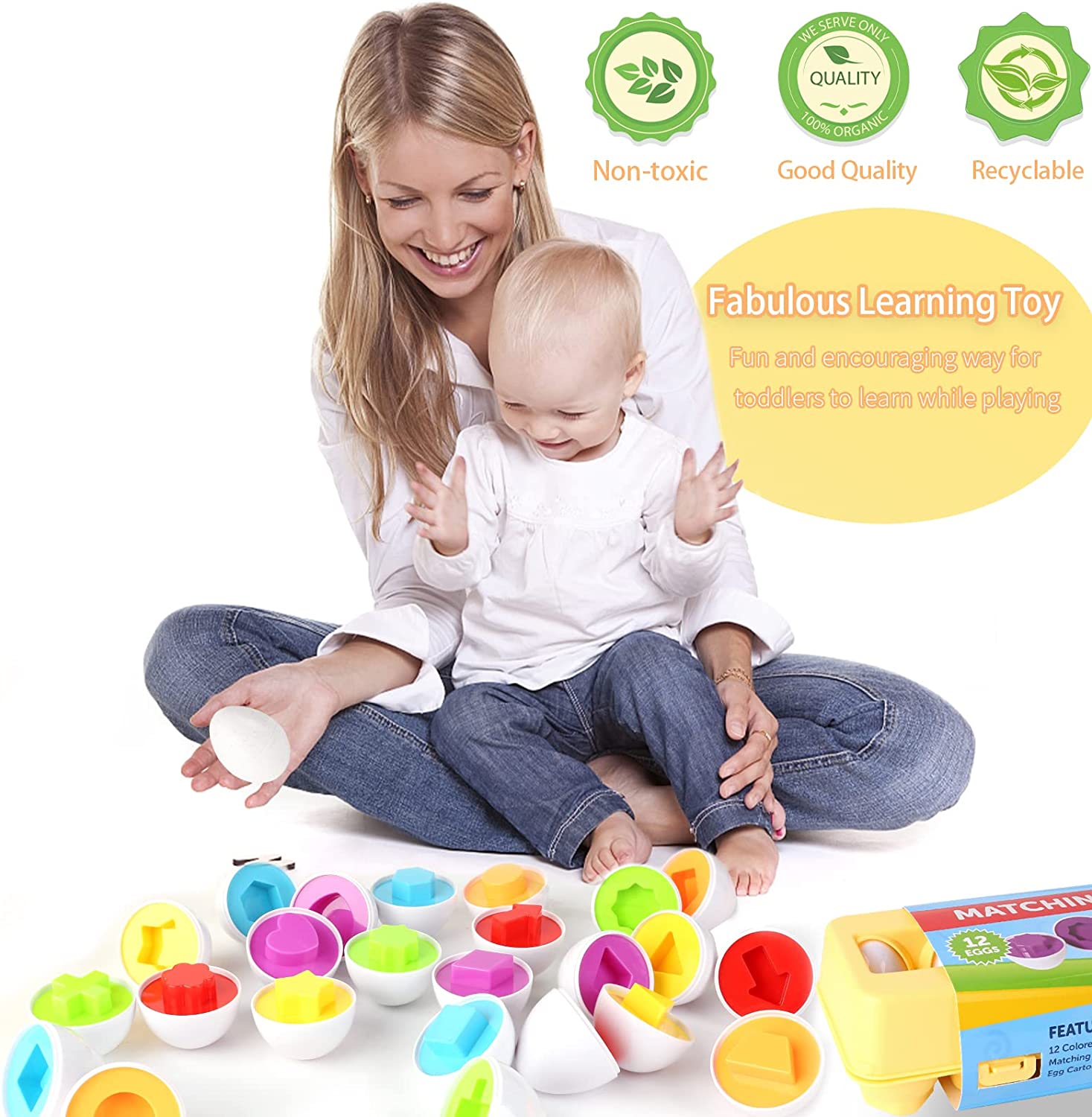 This set of 12 shape and color matching eggs are the ideal educational toy to help your little one develop essential color and shape recognition skills thanks to their various fun matching shapes and colors.