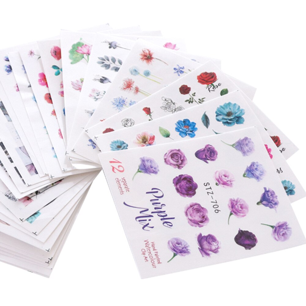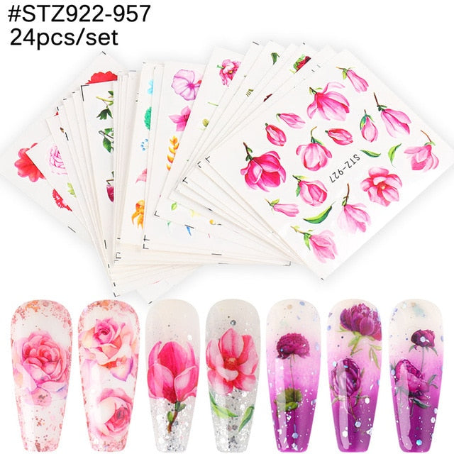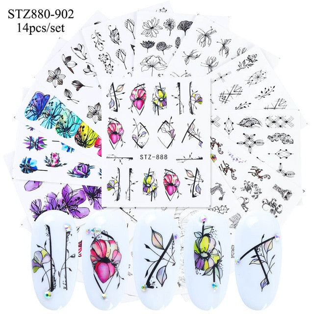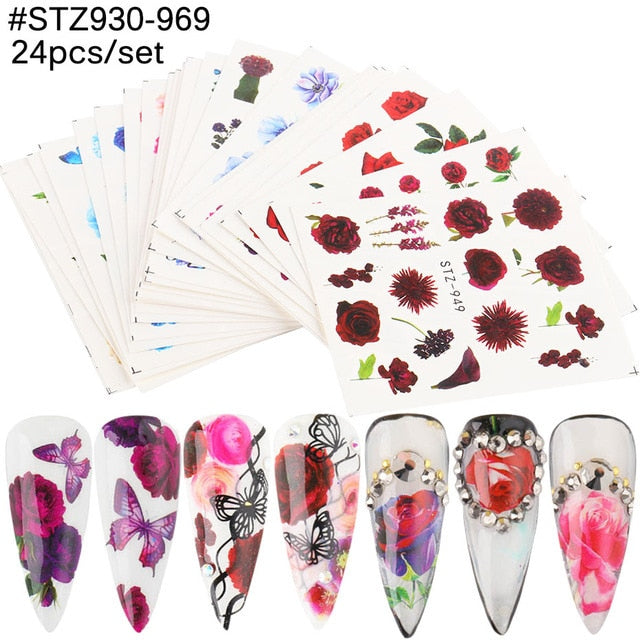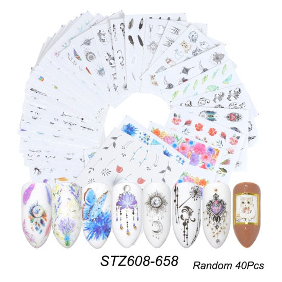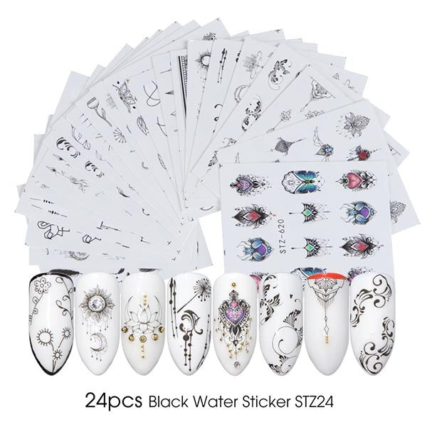 18-50Pcs/Set Mixed Design New Nail Art Sticker Set Black Lace Gold Silver Glitter Flower Water Decal Slider Wraps Decor Manicure