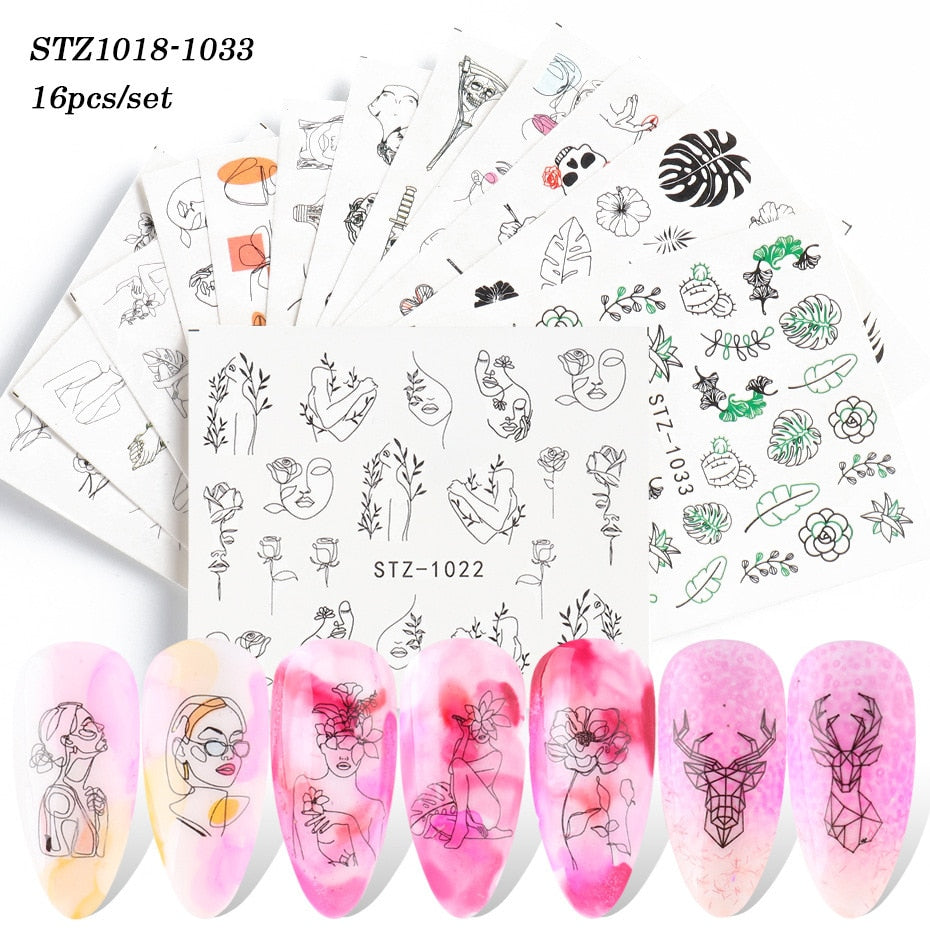 18-50Pcs/Set Mixed Design New Nail Art Sticker Set Black Lace Gold Silver Glitter Flower Water Decal Slider Wraps Decor Manicure Nail Sticker DailyAlertDeals STZ471-488 (18pcs)