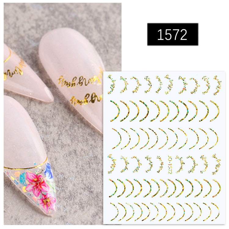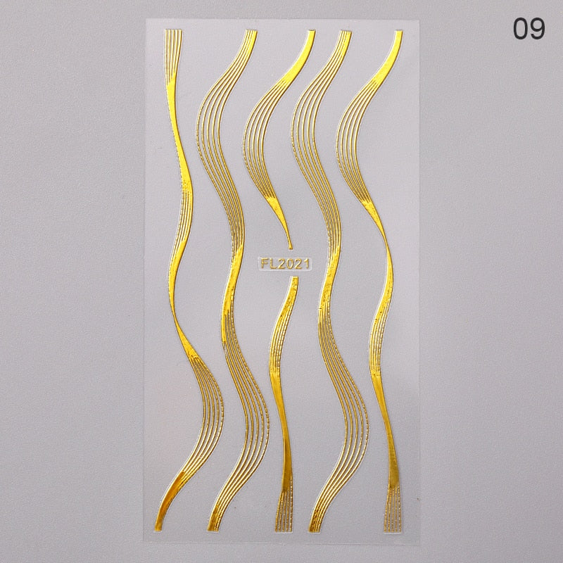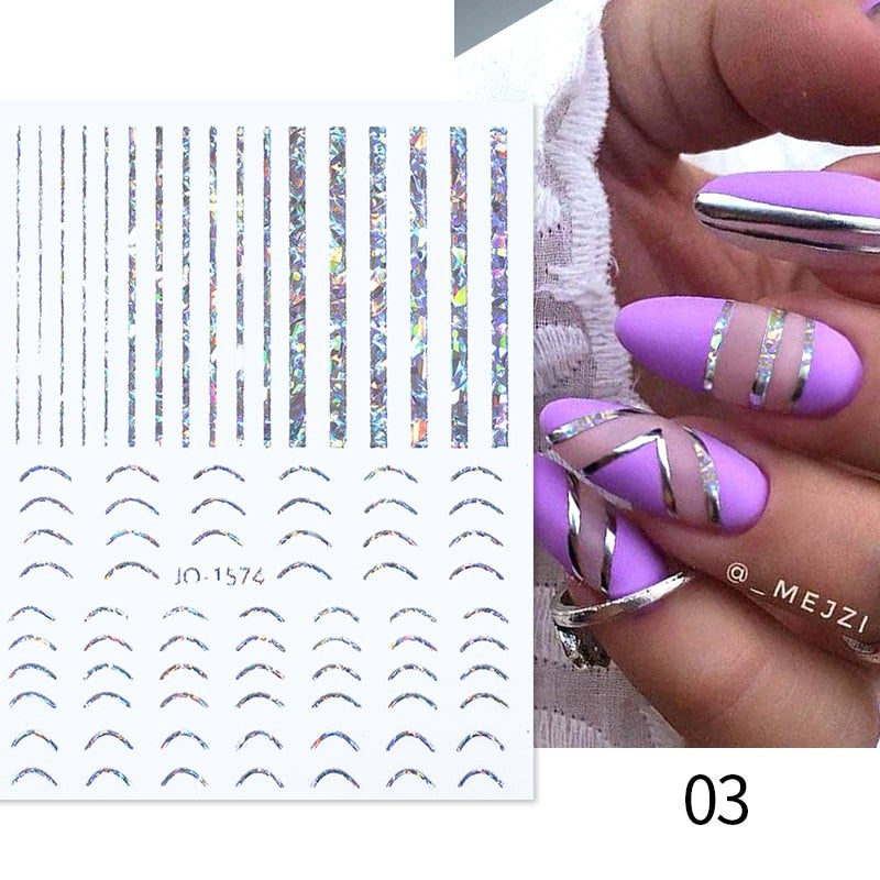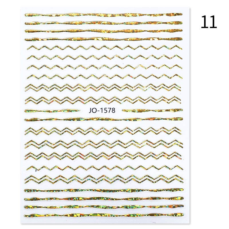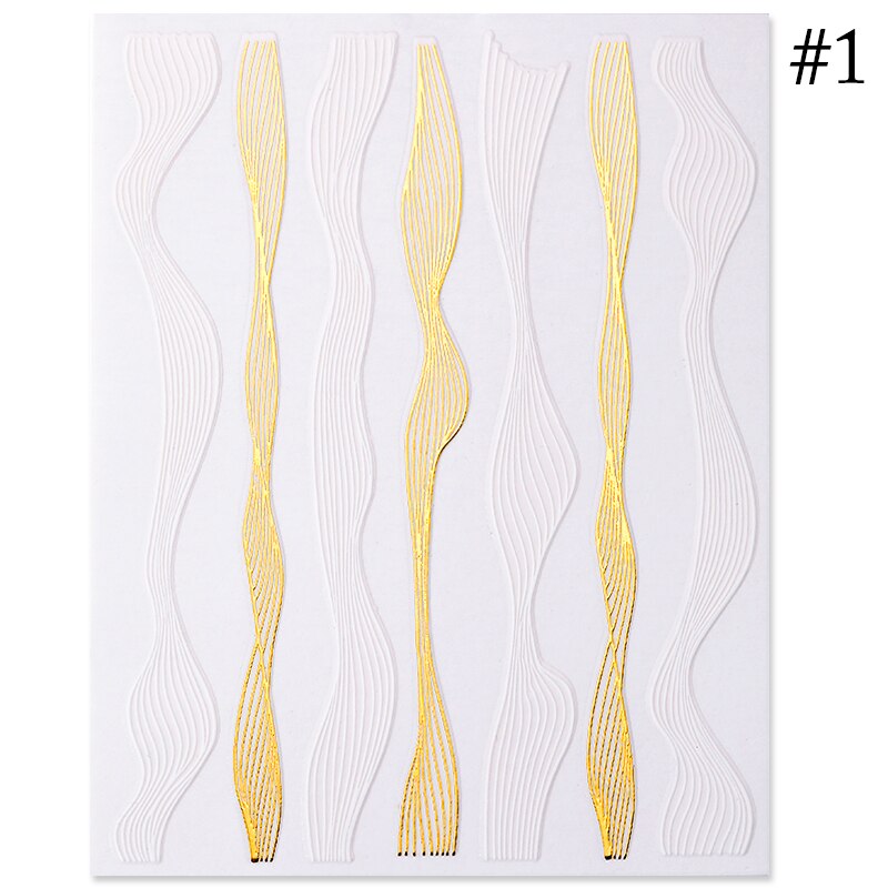 1PC Silver Gold Lines Stripe 3D Nail Sticker Geometric Waved Star Heart Self Adhesive Slider Papers Nail Art Transfer Stickers
