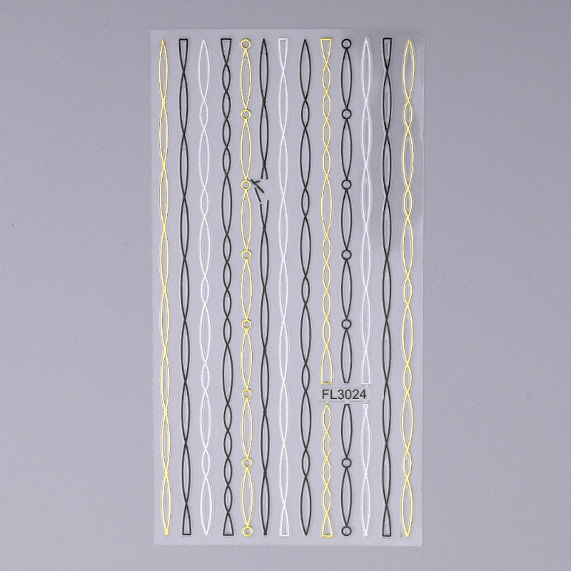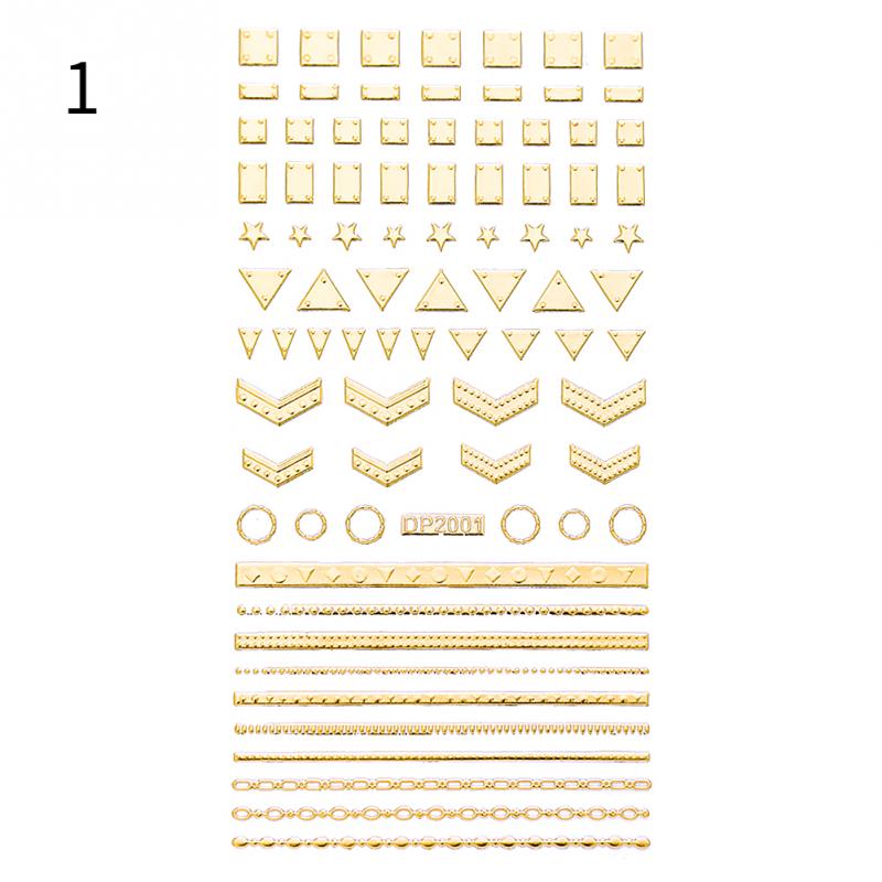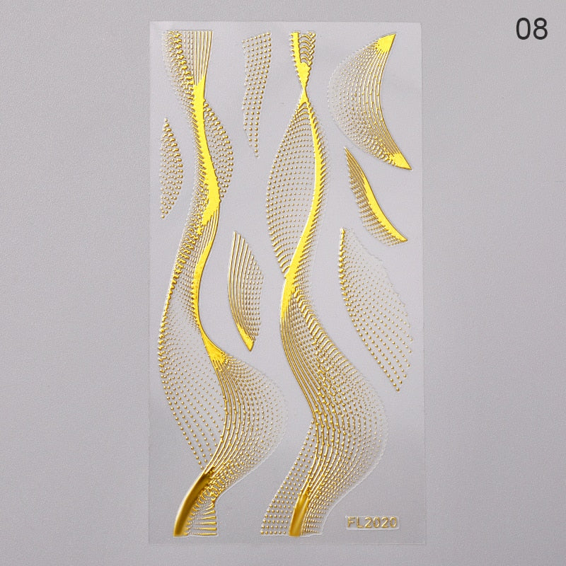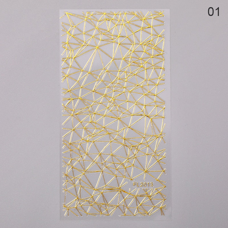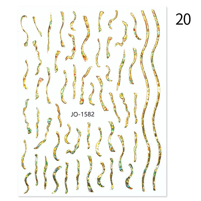 1PC Silver Gold Lines Stripe 3D Nail Sticker Geometric Waved Star Heart Self Adhesive Slider Papers Nail Art Transfer Stickers